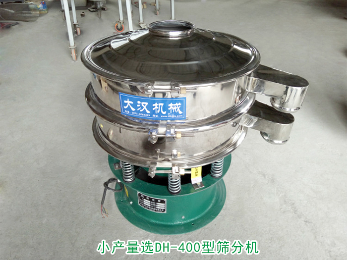 小產量選DH-400型篩分機:篩分直徑為350m/m,功率為0.18kw,每小時處理量為80kg-150kg。