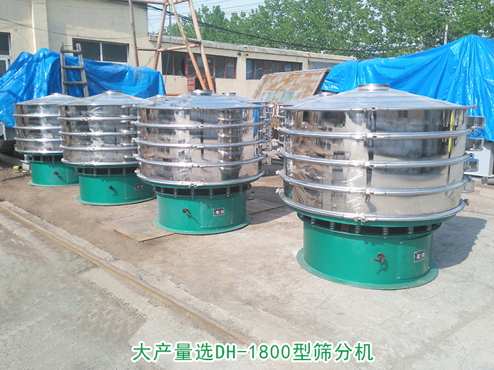 大產量選DH-1800型篩分機:篩分直徑為1720m/m,功率為2.2kw,每小時處理量可達到800kg-1500kg。