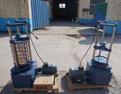 2、將需篩分化驗(yàn)的物料導(dǎo)入上層的篩子內(nèi),蓋好篩蓋后按放在振擺儀承篩座內(nèi)。