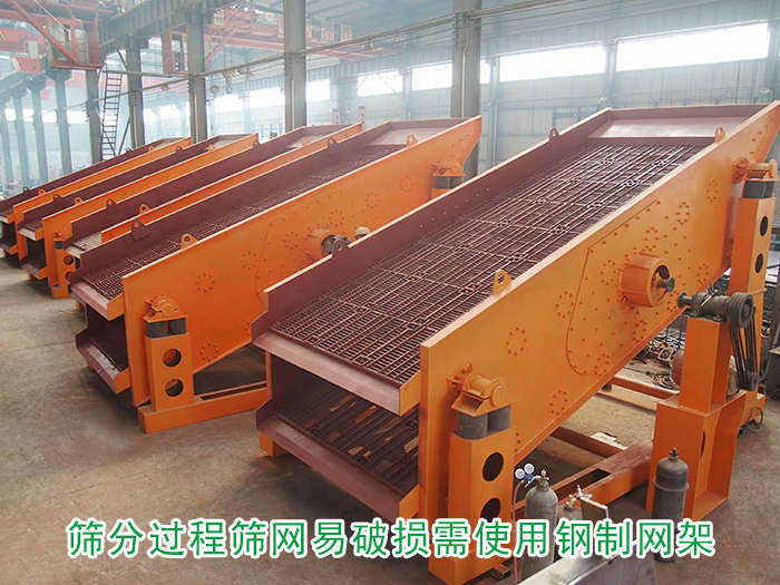 使用礦用篩分機(jī)進(jìn)行篩分時(shí),因其篩分的物料會有一定的的重量,使用普通網(wǎng)架容易造成破損的問題,所以需要使用鋼質(zhì)網(wǎng)架來代替木質(zhì)網(wǎng)架,增加網(wǎng)架和篩網(wǎng)的承受能力,更換為鋼制網(wǎng)架的大型礦用振動篩不僅換網(wǎng)比較方便,更可以延長篩網(wǎng)、篩機(jī)的使用壽命。