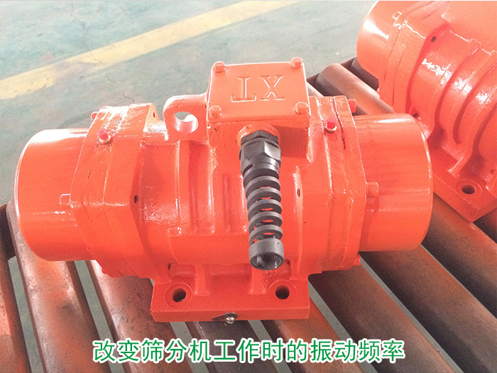 可改變篩分機(jī)工作時的振動頻率與其自身固有的振動頻率為不一致的頻率,可通過振動電機(jī)改變篩分機(jī)的振動頻率從而達(dá)到防止共振的目的。(可調(diào)節(jié)電機(jī)兩端的偏心塊夾角來改動激振力的大小,夾角小,激振力變大,振幅變大;反之,夾角變大,激振力變小,振幅變小)。
